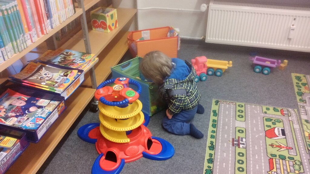 Diese Bilder sind zwar etwas älter, da war Maximilian noch keine 2 Jahre alt und es war unser allererster Besuch in der Bibliothek. Da waren die Bücher bei weitem nicht so interessant wie sie mittlerweile sind.