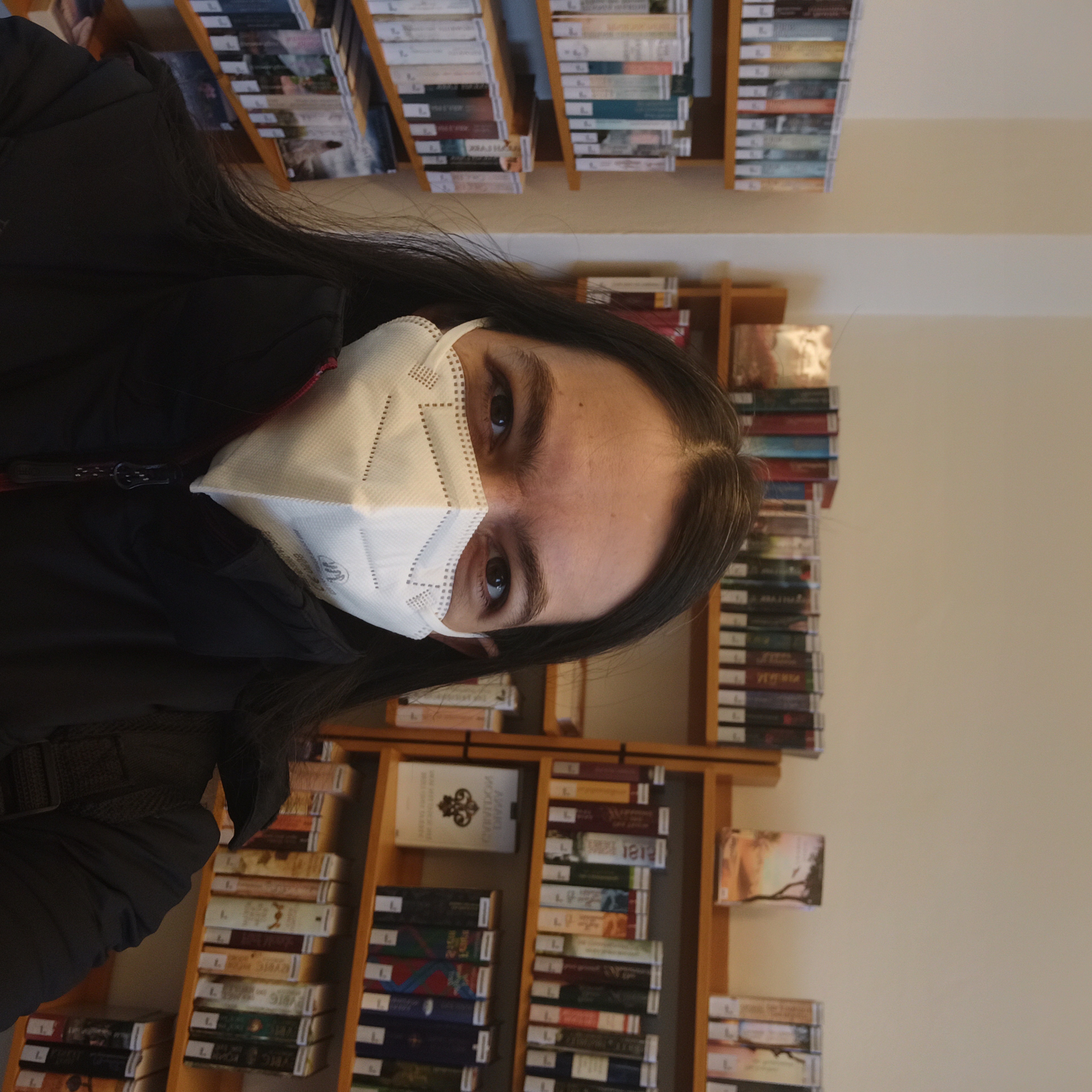 Dennoch konnte ich es mir nicht nehmen lassen, vor Ort erstmal ein Selfie zu machen, und trotz Maske kann man sehen, wie glücklich es mich dennoch gemacht hat, von all den Büchern umgeben zu sein.